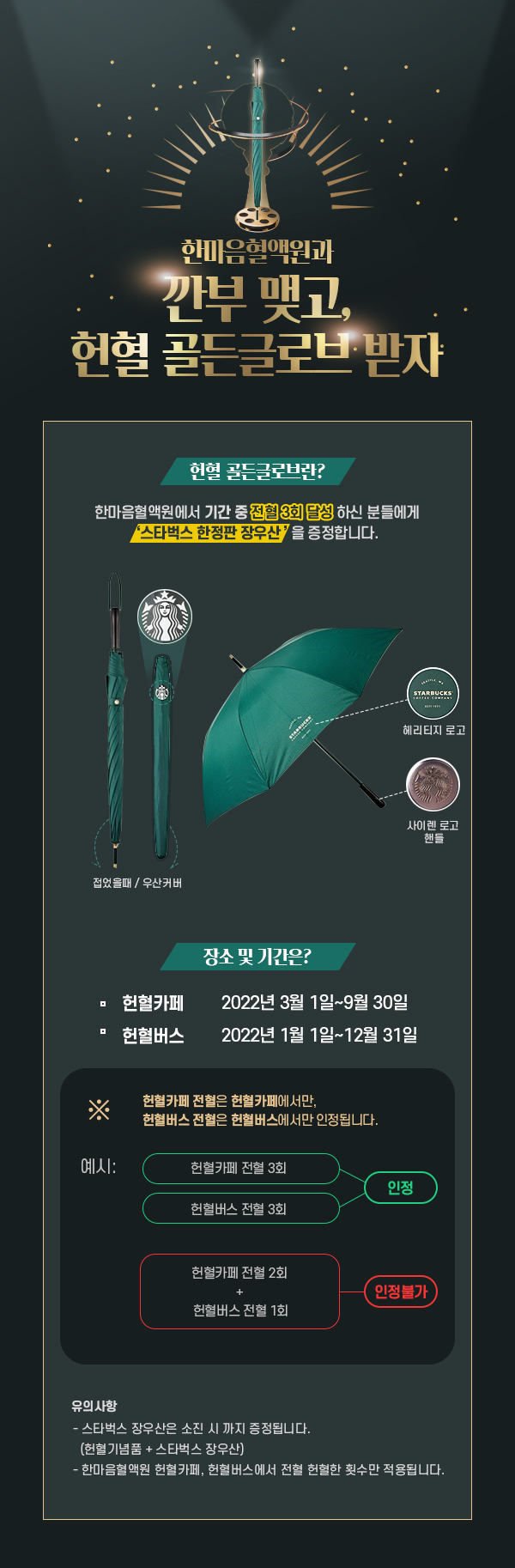오늘 동네에 한마을 혈액원에 헌혈의 갔다 헌혈 의지를 일으키는 이벤트가 있어 여러분께 공유드립니다. 전혈 3회를 하면 스타벅스 장우산을 준다고 하는데요. 우산은 많지만 뭔가 갖고 싶은 마음이 있어서 도전해 봅니다. 전혈은 1회 이후 8주간 못 하기 때문에 날짜를 정확하게 기록해서 계획을 세워야 합니다.