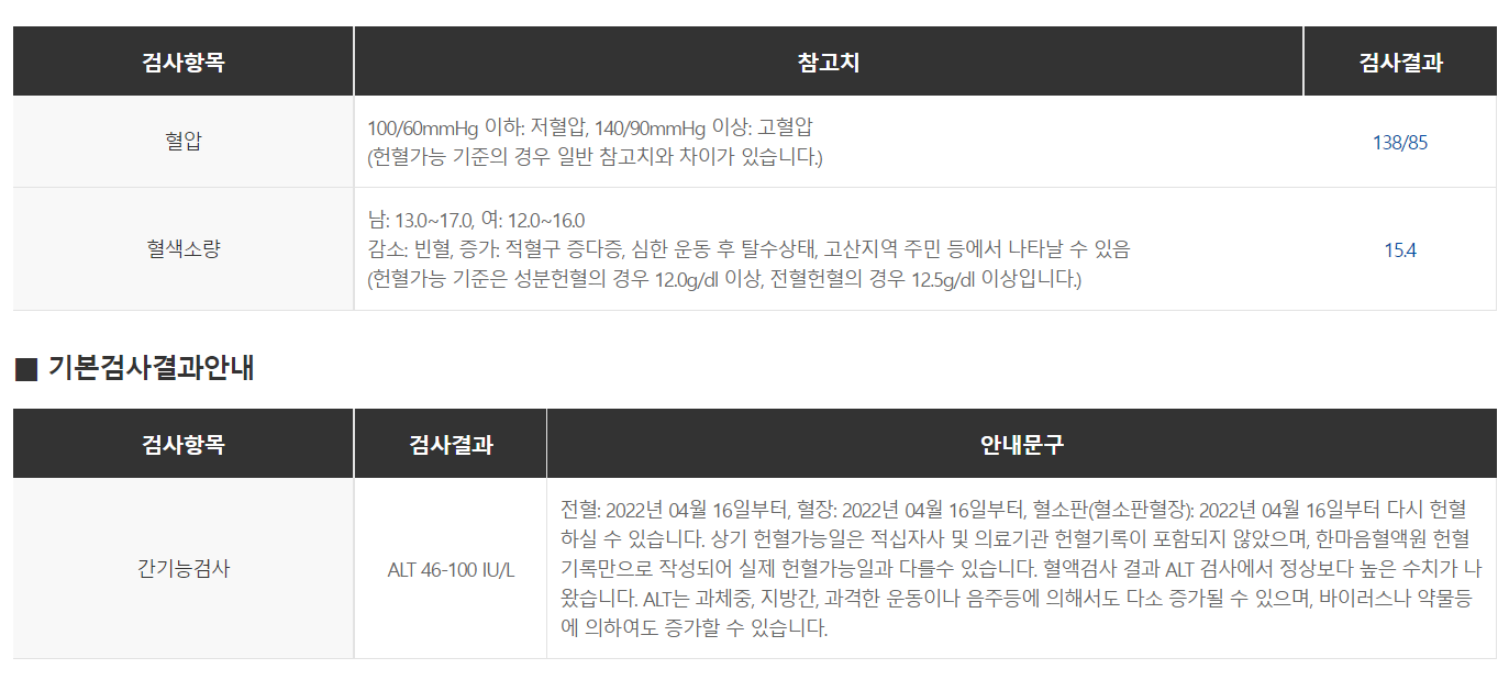 헌혈 전 혈압 및 혈액 검사를 통해 현재 몸상태를 간략하게 검사 할 수 있습니다.